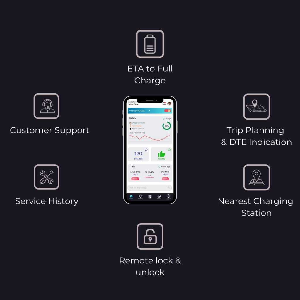 AV Lens is a mobile application available on Android and iOS that provides a smooth user experience. It allows EV OEMs to offer a seamless platform to their end user, enabling them to take full control of their electric vehicles. AV Lens transforms users’ interactions with their EVs from smart charging assistance and battery analytics to trip planning and automated customer support. Elevate your customers’ driving journey with our advanced features, ensuring convenience, efficiency, and all via the comfort of their smartphones.
